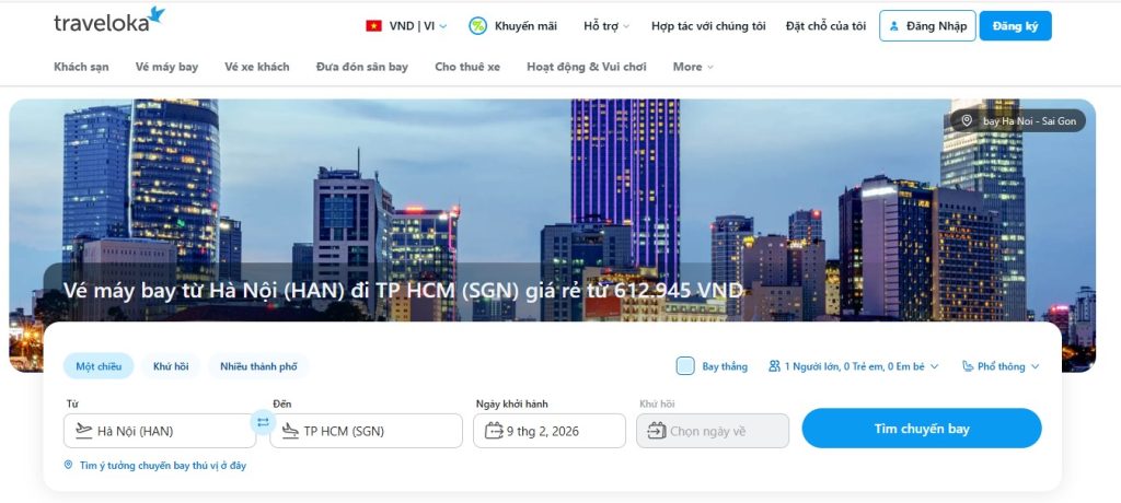 Traveloka được xây dựng như một nền tảng hỗ trợ đặt dịch vụ du lịch hiện đại, giúp người dùng chủ động trong từng quyết định di chuyển. Nhờ công cụ tìm kiếm thông minh và hệ thống hiển thị thông tin rõ ràng, khách hàng có thể đặt vé máy bay Hà Nội Sài Gòn online nhanh chóng, theo dõi nhiều lựa chọn về thời gian bay và mức giá phù hợp. Bên cạnh vé máy bay, Traveloka còn cung cấp các dịch vụ lưu trú, phương tiện di chuyển và tiện ích du lịch khác, kết hợp thanh toán linh hoạt và đội ngũ hỗ trợ 24/7, mang lại trải nghiệm đặt dịch vụ thuận tiện và hiệu quả.